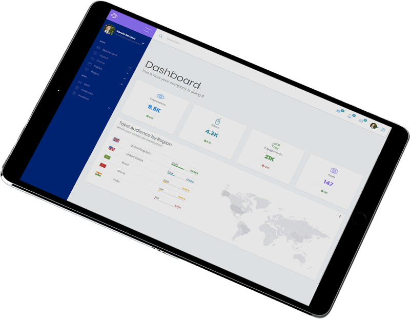 • una dashboard con statistiche dettagliate sui dati aziendali